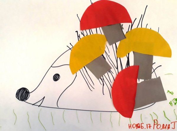 Аппликация Ежик с грибами
