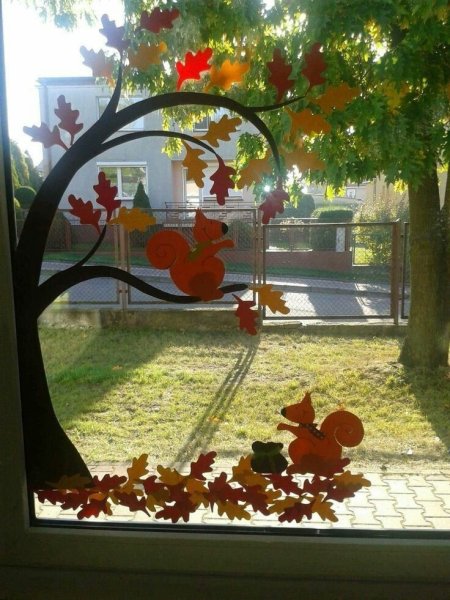 Украшение окон осенью в детском саду