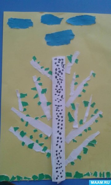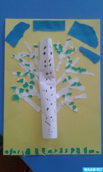Обрывная аппликация береза средняя группа