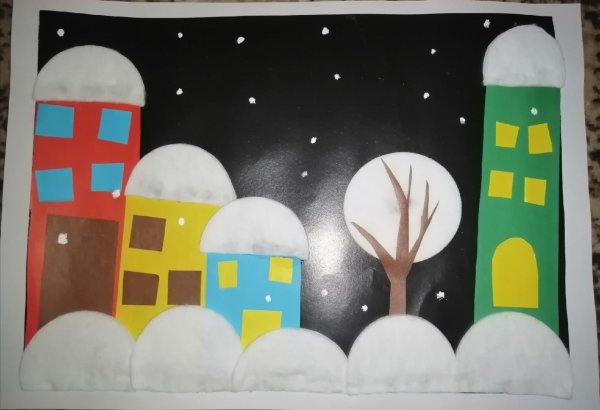 Аппликация зима в городе