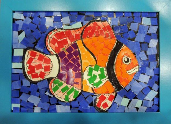 Золотая рыбка Обрывная мозаика из цветной бумаги