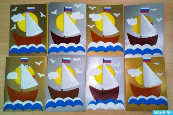 Аппликация кораблик из цветной бумаги