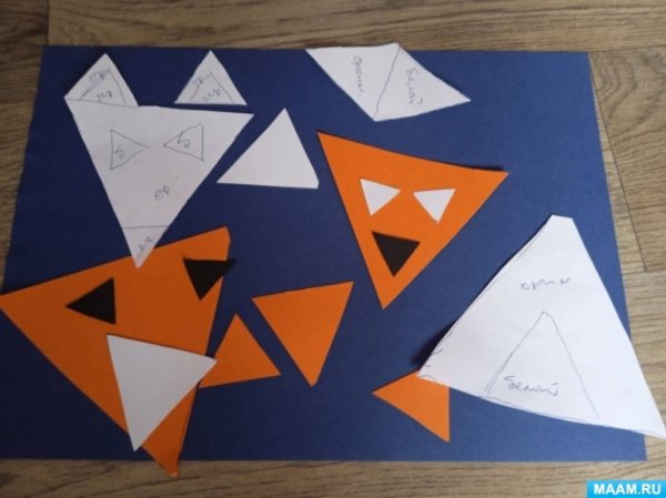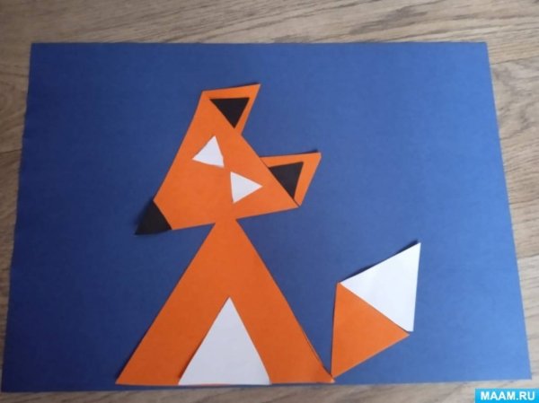 Лиса из треугольников аппликация средняя группа