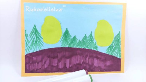Апликация из элементами рисования "Колобок на окошке"