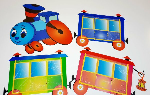 Аппликация паровозика с вагончиками