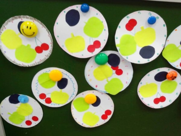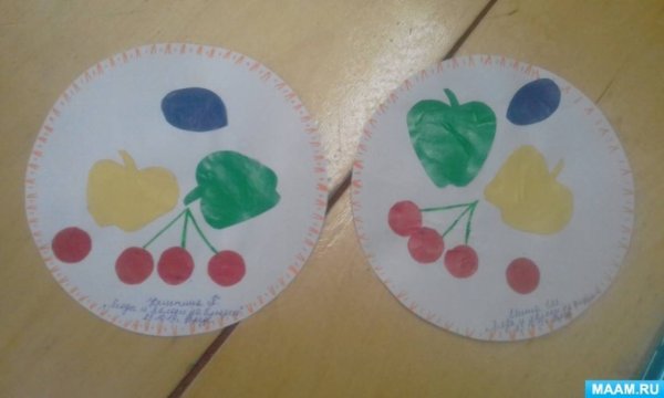 Ягоды и яблоки на блюдечке аппликация во второй младшей группе