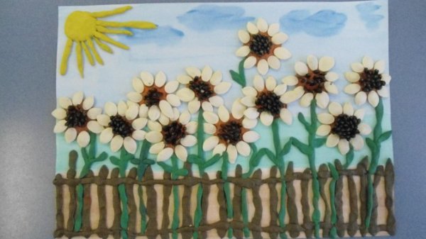 Плетень с подсолнухами лепка в подготовительной группе