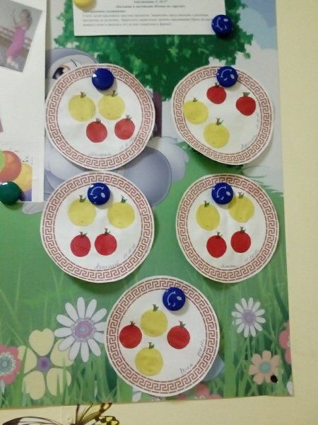 Аппликация яблоки на тарелке в средней группе
