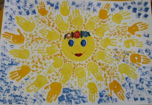 Солнышко из ладошек детей