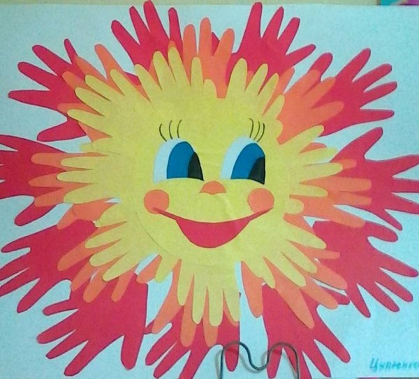 Солнышко из ладошек аппликация