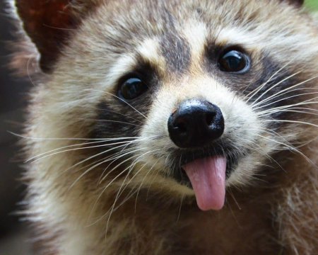 Енот полоскун улыбается