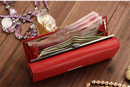 Красный кошелек с деньгами