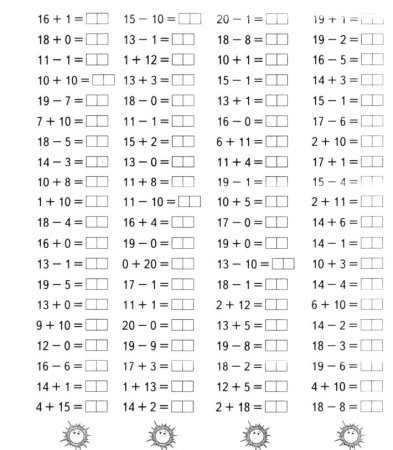 Раскраска математическая 1 класс до 20 сложение и вычитание