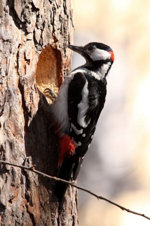 Большой пестрый дятел гнездо