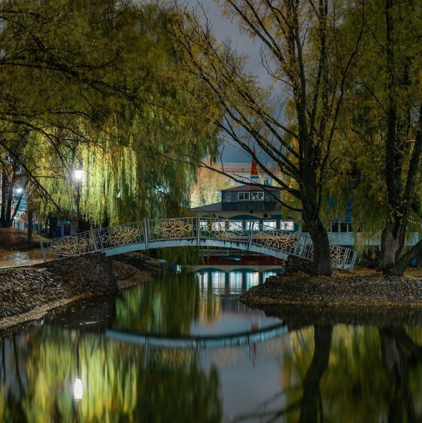 Фото парка ночью в Россоши Воронежской облости 2022год лето