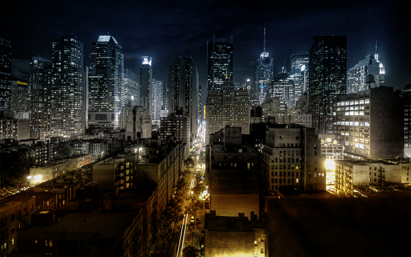 Ночные небоскребы Нью-Йорка