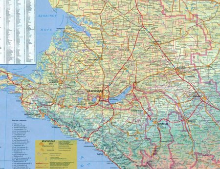 Карта автодорог Краснодарского края с населенными пунктами