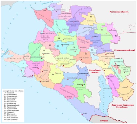 Карта Краснодарского края с районами