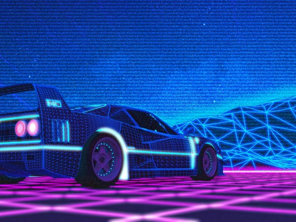 Киберпанк ретровейв Делориан 1080
