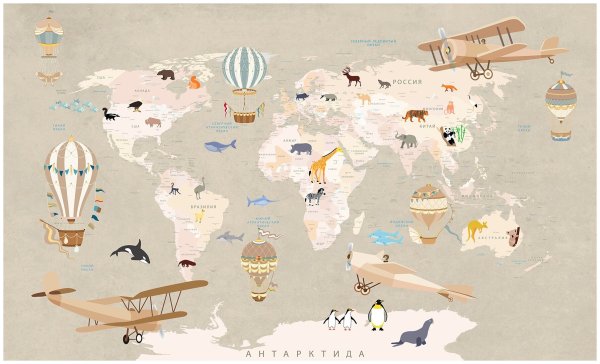 Фотообои в детскую карта мира с животными