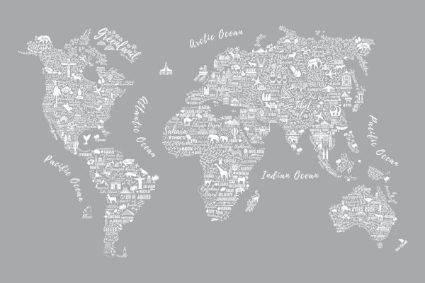 Карта мира черно белая
