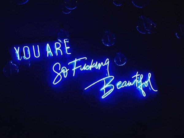 Голубая неоновая надпись