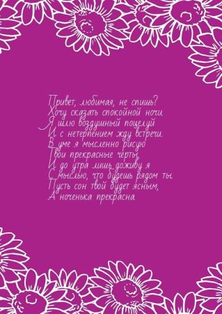 Открытка - это маленький, но значимый символ взаимной любви и поддержки. Она может быть прекрасным способом выразить свои чувства и пожелания близким людям. Независимо от повода или события, ожидание открытки наполняет нас радостью и предвкушением. Открытка - это особый вид коммуникации, который сочетает в себе красоту и эмоциональную глубину. Каждая открытка становится неповторимым шедевром, отражающим уникальность каждого мгновения и отношений. Поэтому мы ждем с нетерпением открытку, чтобы подарить ее и поделиться своими чувствами с теми, кто нам дорог.