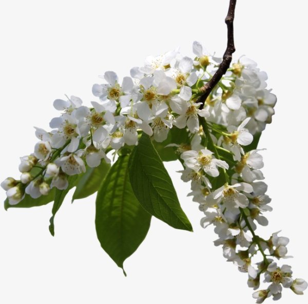 Ветка черемухи на прозрачном фоне