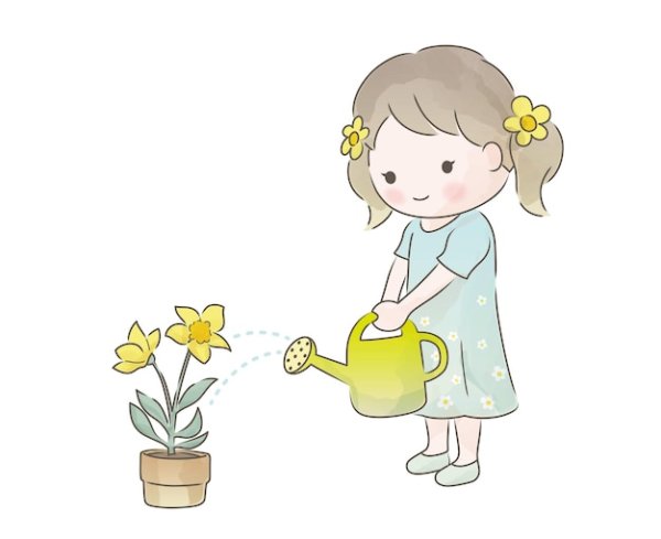 Картинка девочка поливает цветы
