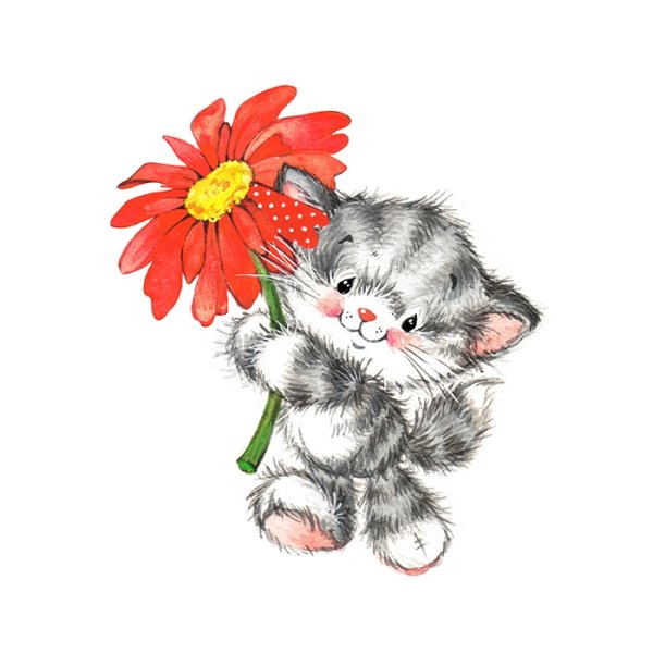 Котенок с цветком на прозрачном фоне
