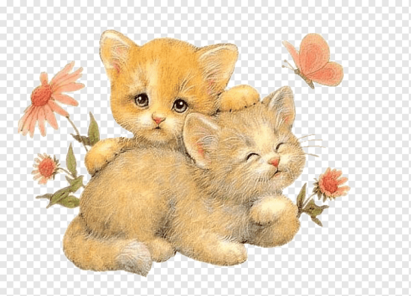 Котенок с цветами на прозрачном фоне