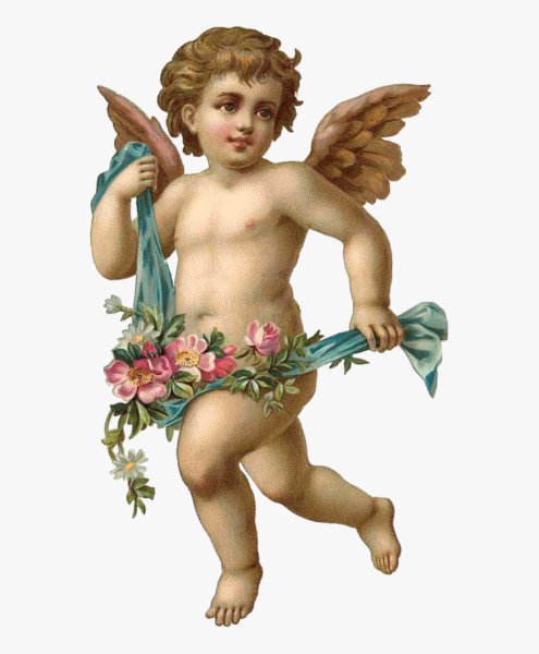 Ангелочек с цветами на прозрачном фоне