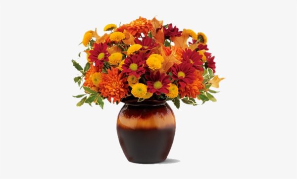 Ваза с осенними листьями на прозрачном фоне