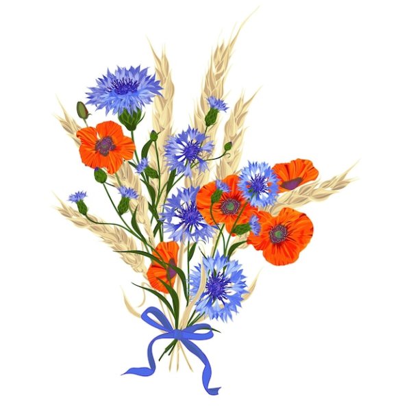 Маки васильки на прозрачном фоне