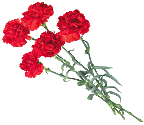 Красные гвоздики на прозрачном фоне