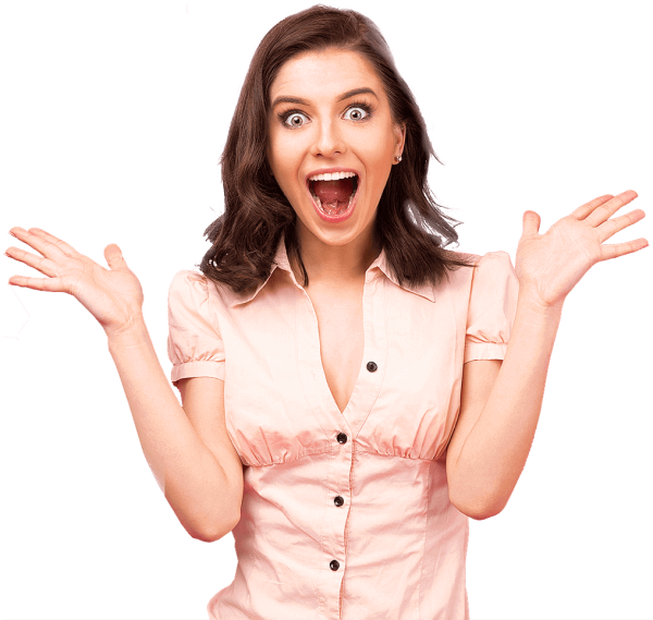 Удивленная девушка на прозрачном фоне