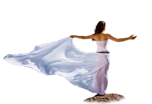 Девушка в длинном ситцевом платье на прозрачном фоне