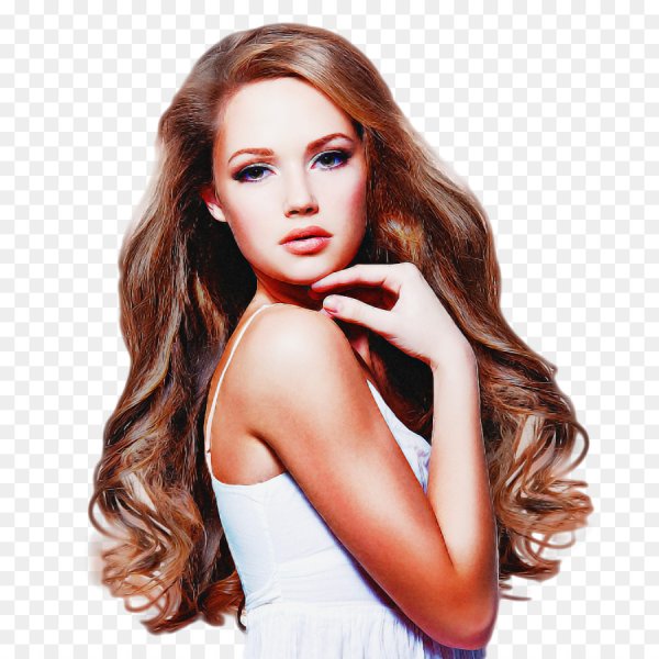 Девушка с длинными волосами на белом фоне