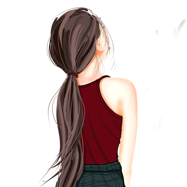 Девушка спиной на прозрачном фоне