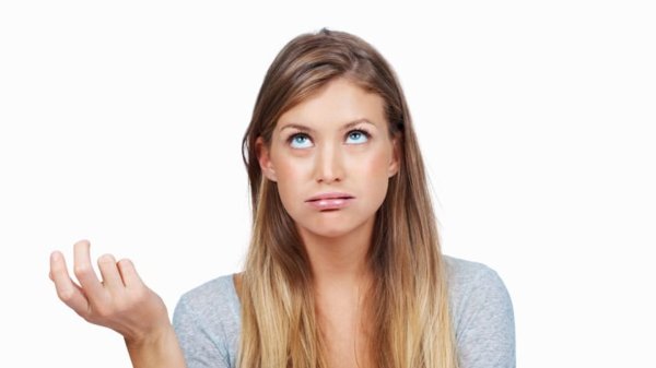Женщина думает белый фон