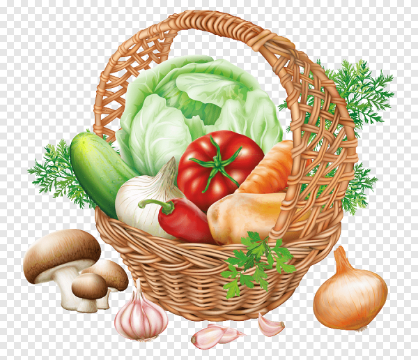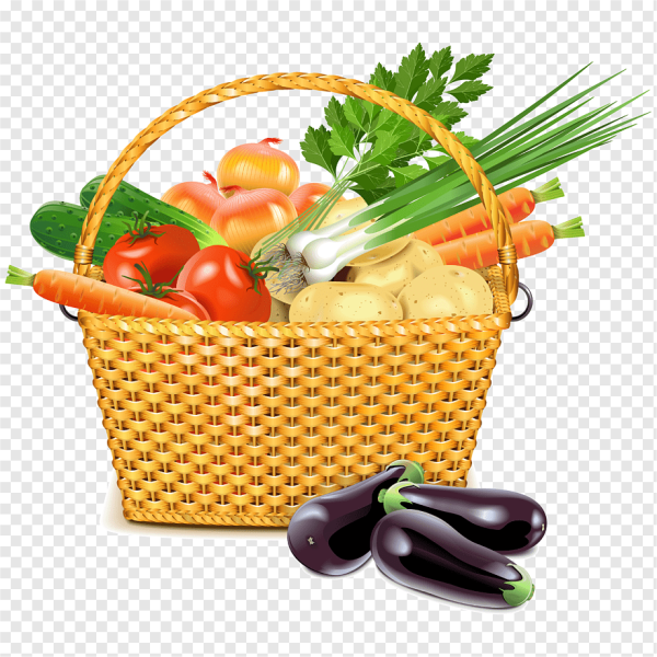 Корзинка с овощами для детей на прозрачном фоне