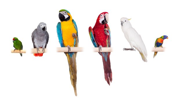 Попугаи е на белом фоне