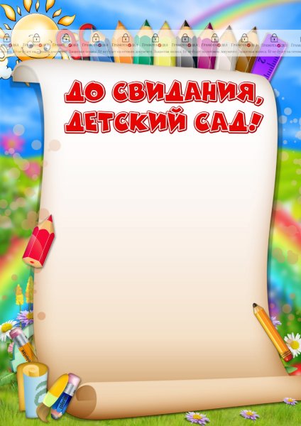 Эта красочная картинка представляет собой привлекательную детскую рамку с надписью "До свидания, детский сад". Рамка выполнена на прозрачном фоне, что позволяет легко вставить ее на любое изображение или фотографию. Она идеально подходит для создания памятных открыток, коллажей или других творческих проектов, связанных с прощанием с детским садом. Яркие цвета и дружелюбный дизайн данной рамки помогут сохранить воспоминания о замечательных моментах, проведенных в детском саду, и добавят особый шарм вашим работам.