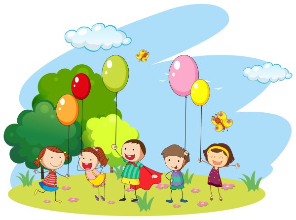 Мультяшные дети с воздушными шарами