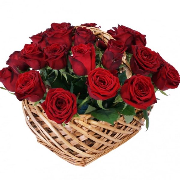 Красные розы в корзине