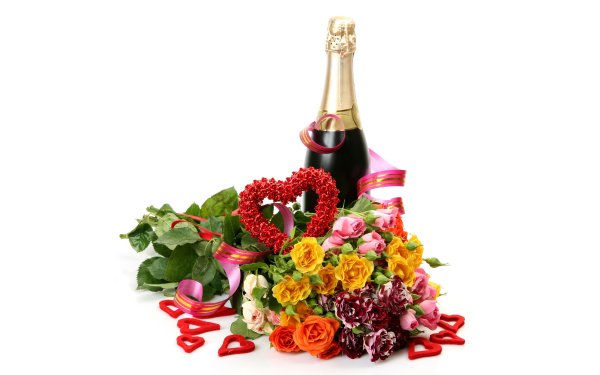 Букет роз и бутылка шампанского
