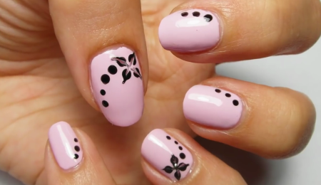 Нюдовый маникюр с черным рисунком