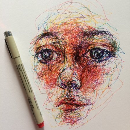 Портрет фломастерами и карандашом