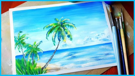 Морской пейзаж гуашью для детей