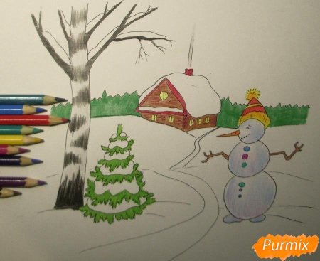 Рисование зима карандашами